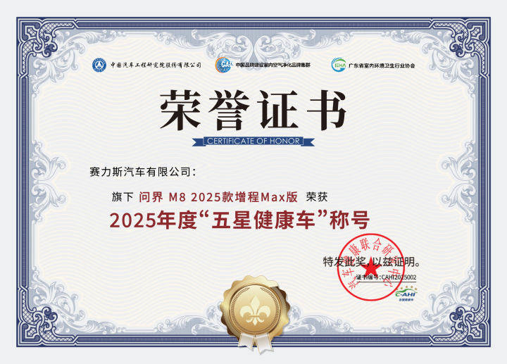 值得一提的是,问界M8荣膺“五星健康车”认证,标志着问界全系构建起“全系五星健康车”产品矩阵。这不只是对单一车型的认可,更是问界对“零损害”品牌愿景的体系化饯别。品牌一直精准洞悉用户对健康出行的深层关心,体系性构筑起包括“新鲜呼吸、母婴亲肤、舒适护眼、静寂动听、抗扰无忧”的全维健康生态,将许诺深植于每一处细节,不只从头界说了车内健康安全规范,更为新动力汽车职业树立了全新的价值标杆。未来,问界将继续以健康科技为驱动,引领职业迈向更高阶的健康安全出行年代。